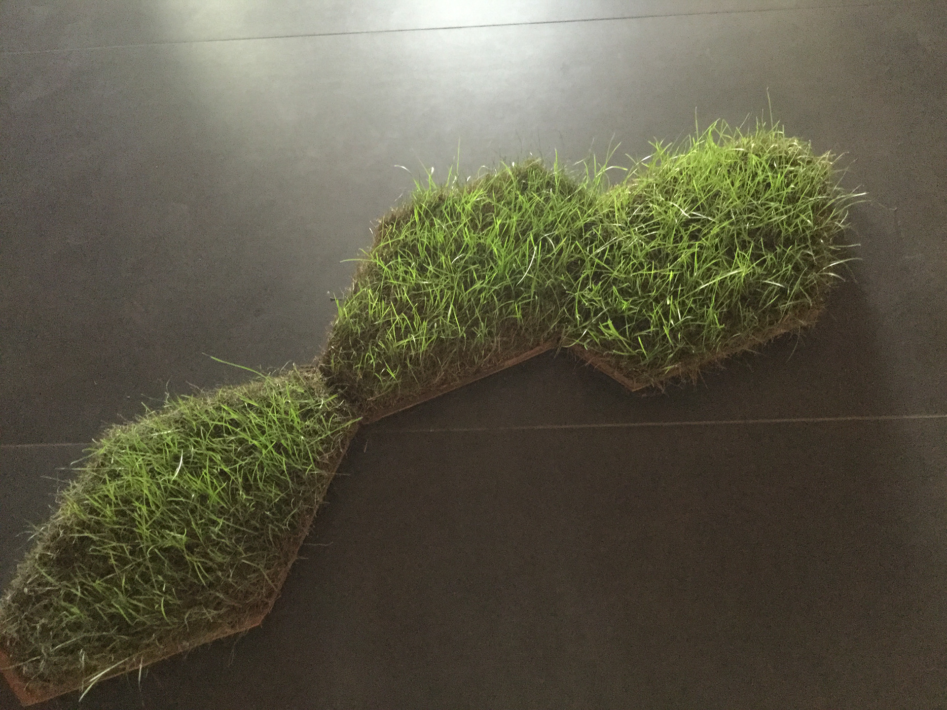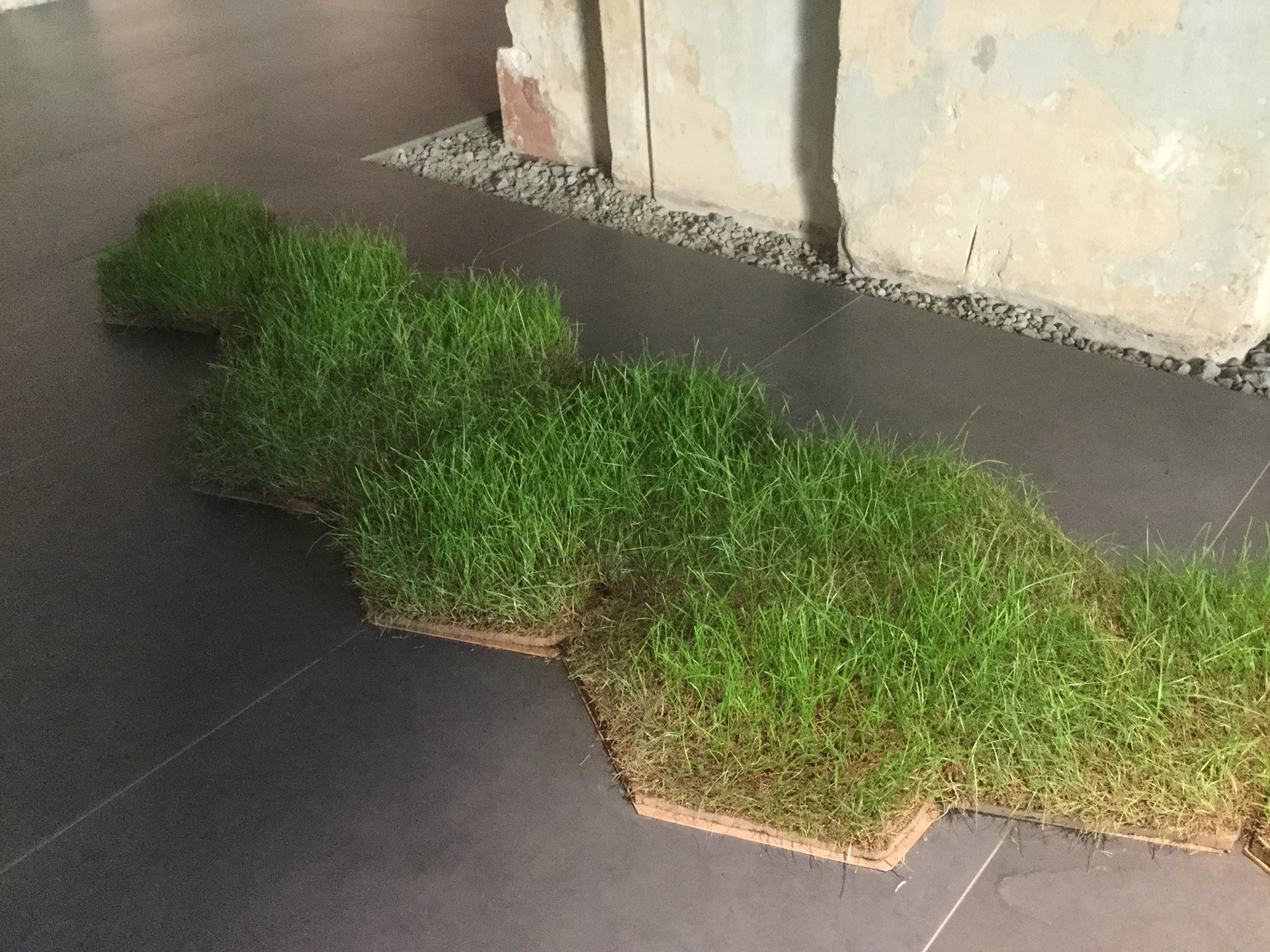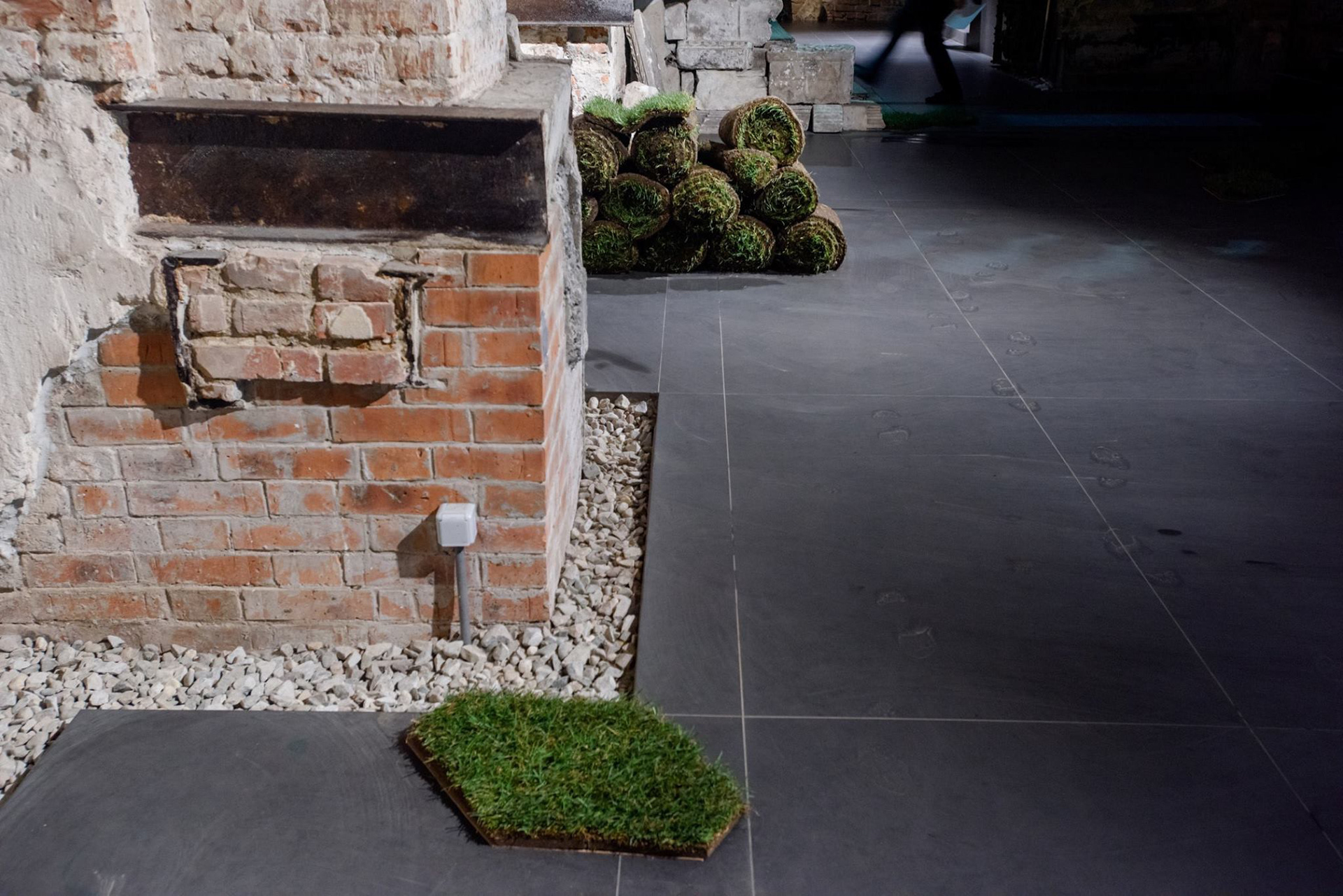 В инсталляции использован живой газон, повторяющий форму плитки из парка Зарядье. Фрагментарное отсутствие таких "плиток" либо их концентрация дает референс на тротуарно-плиточное благоустройство собянинской Москвы. В течении выставки травка поливалась, и выросла в своеобразную экосистему. Работа была реализована в рамках исследовательского проекта Михала Муравски и Дарьи Кравчук, посвященного урбанистике, архитектуре и антропологии. Флигель "Руина" Музея архитектуры им. А.В. Щусева